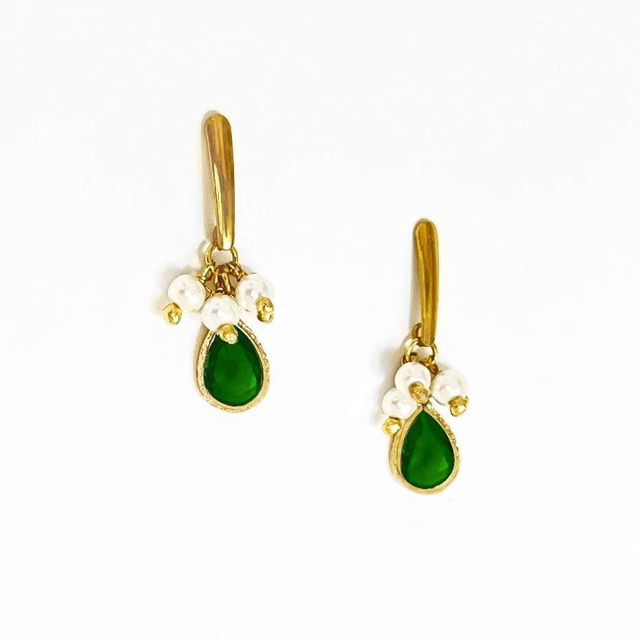 Aro bañado en oro con un resplandeciente peridoto y delicadas perlas de río, una combinación que irradia belleza.
