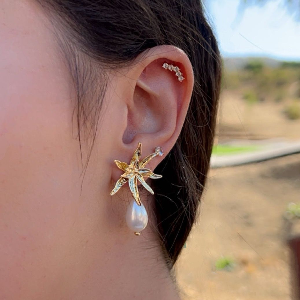 Aro bañado en oro. Exclusivo diseño de nuestra marca con Perlas de río, le da un toque atemporal a tu look.