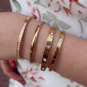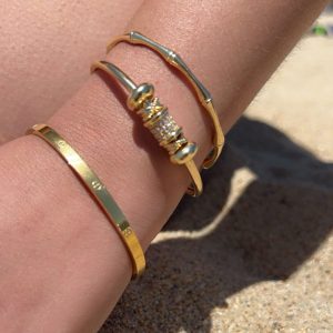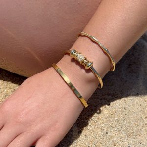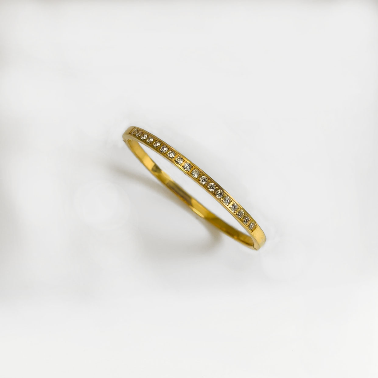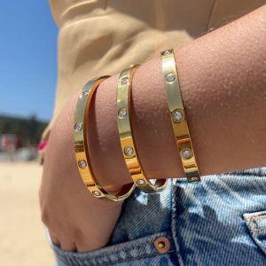 Brazalete bañado en oro, perfecto para fiestas y ocasiones especiales, con circones engastados elegancia a tu look.