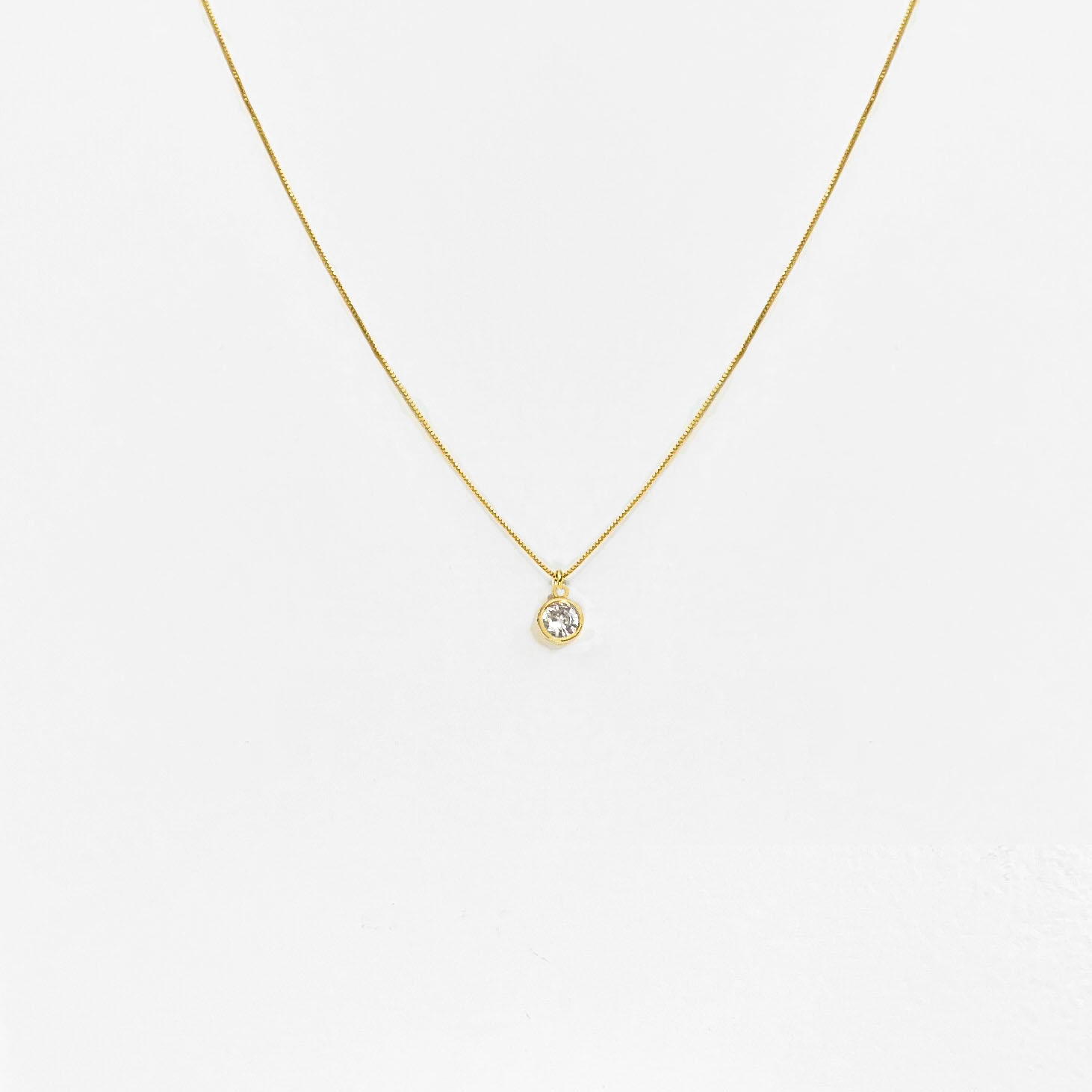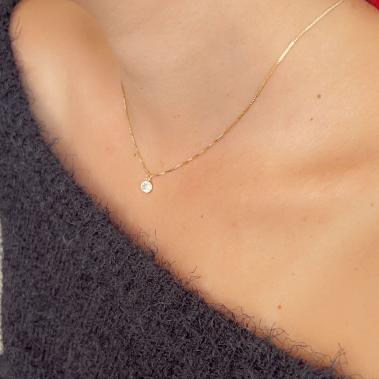 Collar bañado en oro, el clásico ‘Punto de Luz’, con circón. Es el complemento perfecto para cualquier look diario.